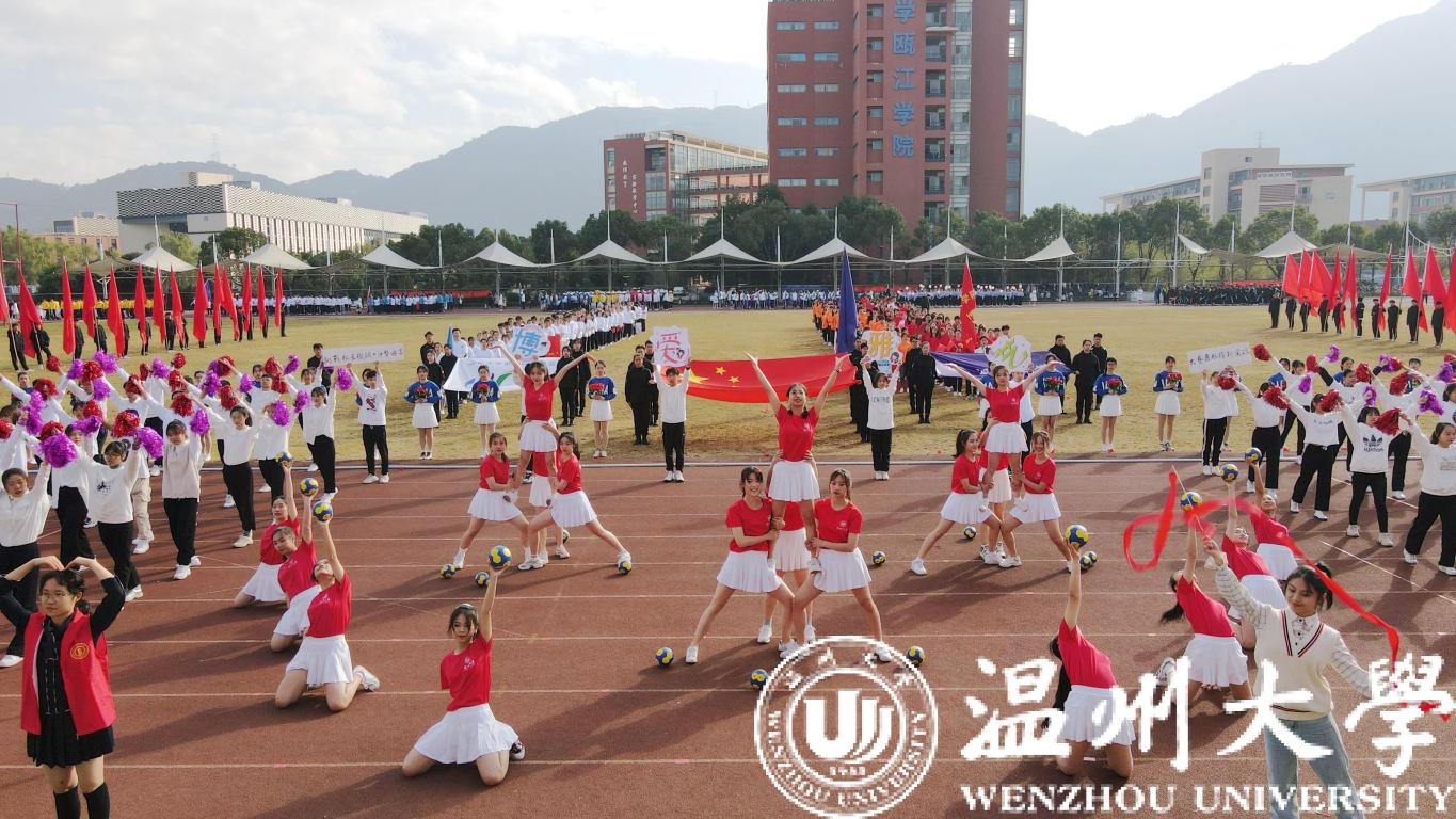 在雄壮的运动员进行曲中,校国旗护卫队迈着矫健的步伐走来。鲜红的国旗在空中挥动,彰显着温大学子的青春和热血。紧随其后的鲜花队和彩旗队充满朝气和力量。