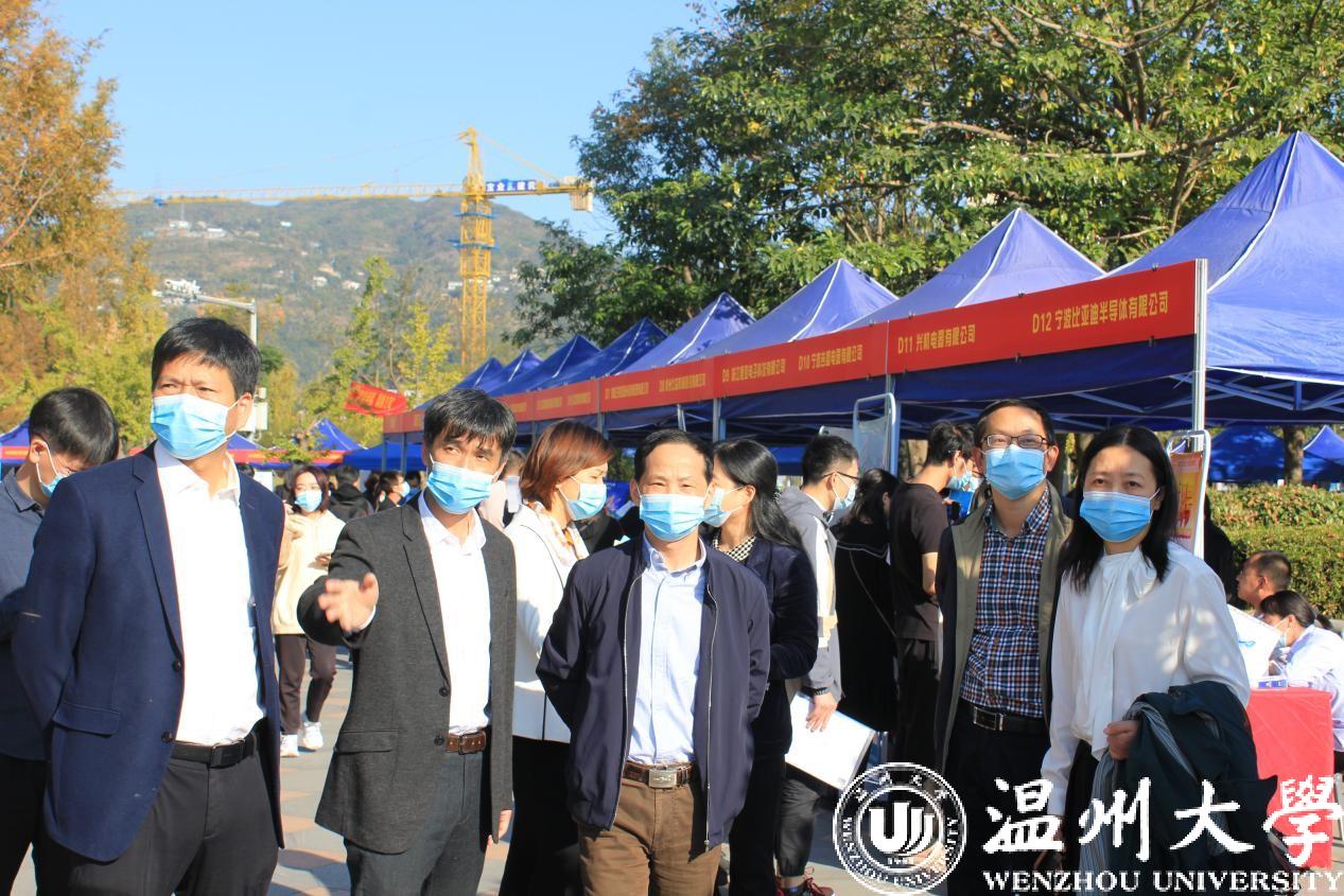 为搭建高校毕业生和用人单位供需洽谈平台,深入贯彻落实温州市高校毕业生招引“510计划”,促进我校毕业生充分就业和高质量就业,11月14日下午,浙江省2021届高校毕业生温州专场招聘会暨开云电子(中国)官方网站_开云电子(中国)官方网站2021届毕业生校园招聘会在我校举办。此次招聘会由浙江省教育发展中心、温州市人力资源和社会保障局、开云电子(中国)官方网站_开云电子(中国)官方网站共同举办,校党委副书记庄兴忠、浙江省教育发展中心主任林成格、学生就业工作部主任朱伟君、温州市人才市场管理办公室副主任朱芳莅临指导,学院分管就业工作副书记、招就处全体人员及学院就业辅导员与会,了解用人单位的人才需求和学生应聘情况。