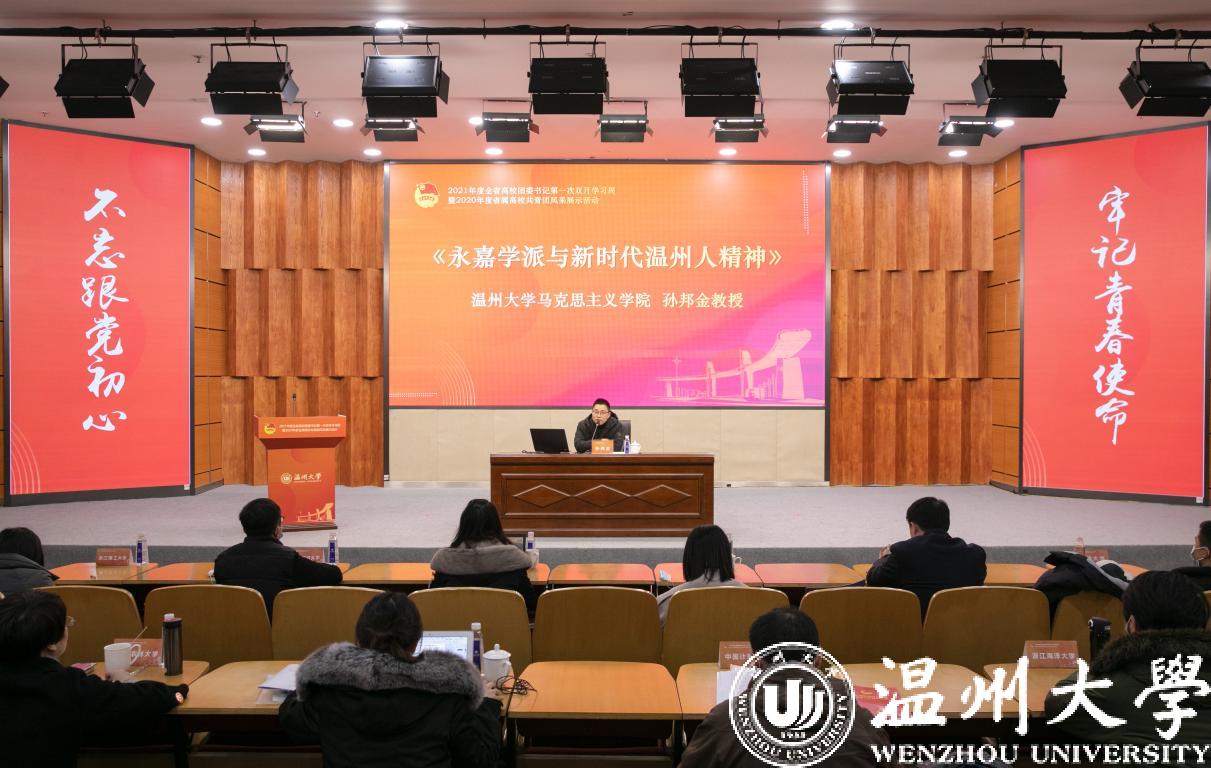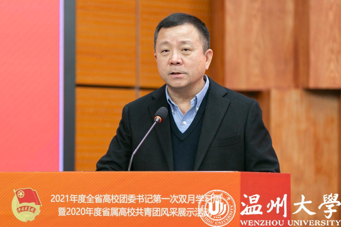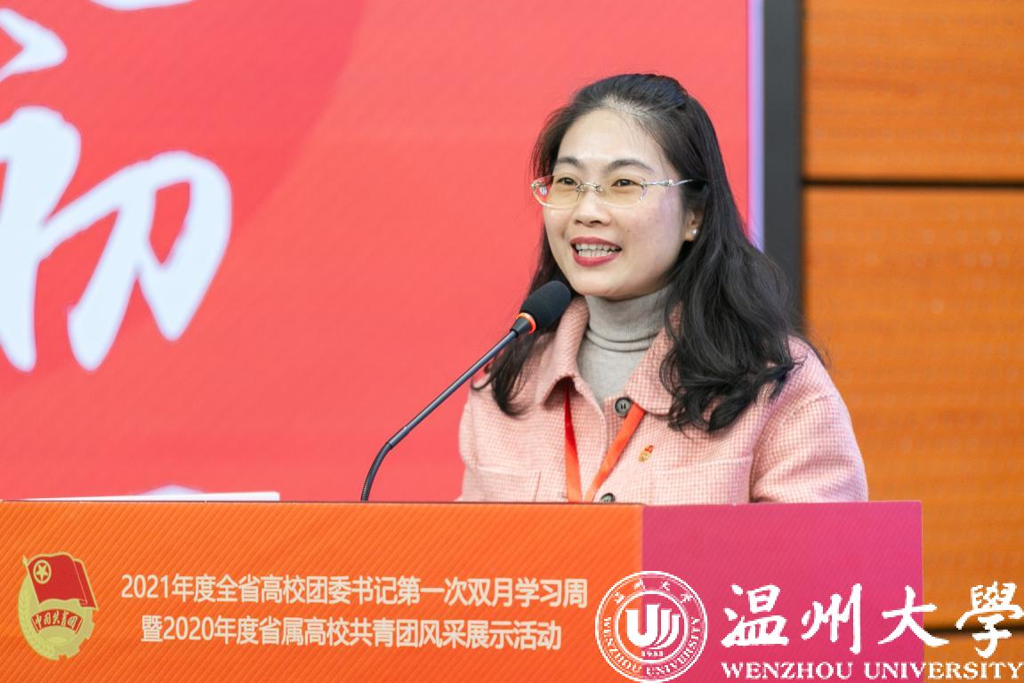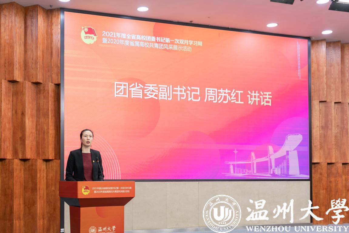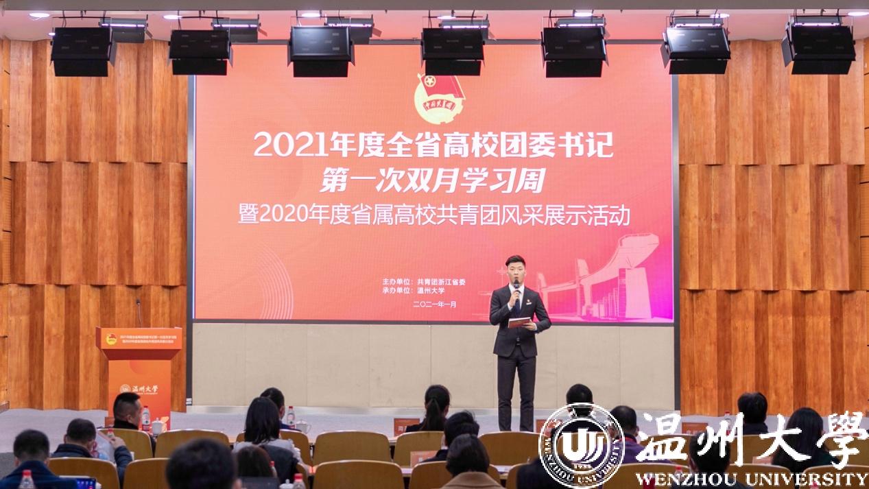 1月6日至8日,2021年度全省高校团委书记第一次双月学习周暨2020年度省属高校共青团风采展示活动在我校举行,团省委副书记周苏红、校党委书记谢树华、副书记庄兴忠、温州团市委书记董步显等出席活动。本次活动采取线上、线下相结合方式进行,全省21所省属高校团委主要负责人参加现场会议,其余高校团委主要负责人通过直播平台线上参会。