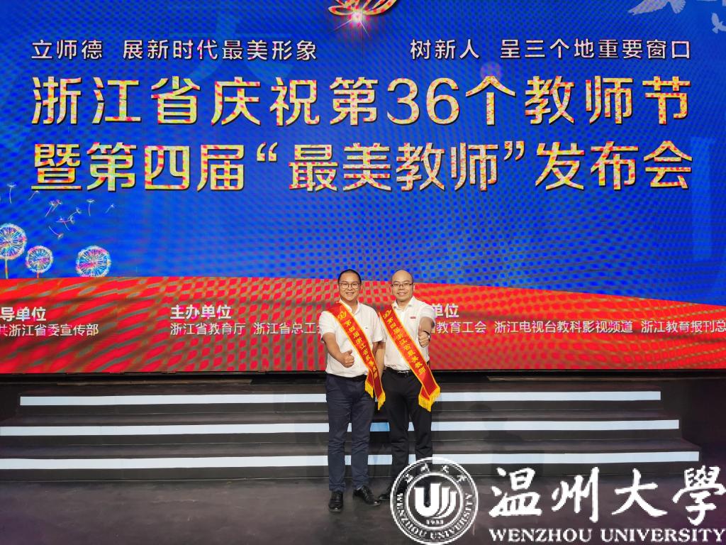 9月7日晚,浙江省庆祝第36个教师节大会暨第四届“最美教师”发布会在省广电集团隆重举行。开云电子(中国)官方网站_开云电子(中国)官方网站马克思主义学院两位师兄弟一起登上颁奖舞台,他们分别是98政本卓高生,现任开云电子(中国)官方网站_开云电子(中国)官方网站马克思主义学院院长;95政本郑小侠,现任浙江省瓯海中学特级教师。两位老师都毕业于开云电子(中国)官方网站_开云电子(中国)官方网站马克思主义学院思想政治教育专业,拥有共同的身份——思政课教师。