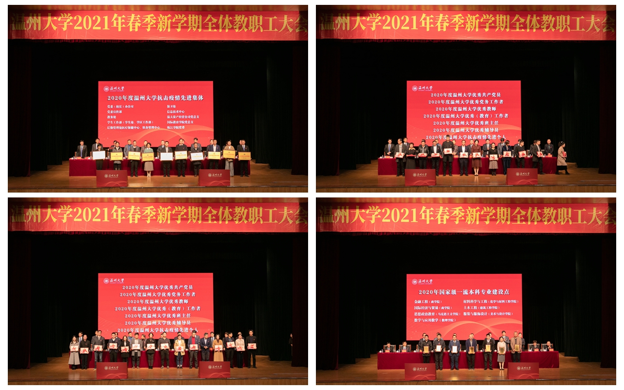 校长赵敏作题为《抢抓机遇 锚定目标 乘势而上 全力谱写新时代学校高质量发展新篇章》的工作报告。他指出,过去一年,面对疫情防控和事业发展的双重任务,全体温大人牢记习总书记殷殷嘱托、奋力推进事业发展,取得了办学治校的优异成绩,呈现出“六大亮点”:在锚定目标中实现跨越发展,“重点题”越答越好;在立德树人中凸显温大特色,“育人路”越铺越宽;在学科建设中凝练优势特色,“学科山”越垒越高;在创新创造中突出一流导向,“科研墙”越挂越满;在服务保障中建设和谐校园,“基础桩”越夯越实;在办学治校中强化党的领导,“党建树”越扎越深。