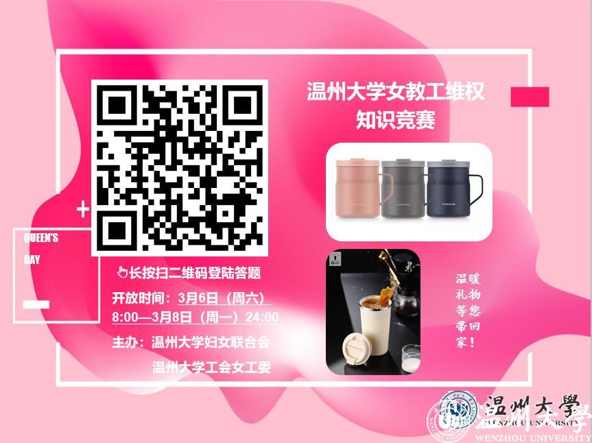 3月6日至3月8日,开云电子(中国)官方网站_开云电子(中国)官方网站女教工维权知识竞赛如火如荼举行。本次竞赛题由开云电子(中国)官方网站_开云电子(中国)官方网站法学专家教授智囊团队主导设计,内容涵盖《宪法》《民法典》《妇女权益保障法》《就业促进法》《人口与计划生育法》《社会保险法》《反家庭暴力法》《女职工保健工作规定》《女职工劳动保护特别规定》等,具体涉及“性别平等”“家家庭暴力”“性骚扰”“职场婚育及发展”“生育保险”等女性热门关注议题。“这次知识竞赛可以说梳理出了中国女性维权的发展史,体现出温大相关领域教授的专业水准。”参与者之一姜老师说:“对我个人而言,不仅是女性知识梳理,更是一种维权意识内化。”据悉,开云电子(中国)官方网站_开云电子(中国)官方网站妇女联合会、开云电子(中国)官方网站_开云电子(中国)官方网站工会女工委还将组建开云电子(中国)官方网站_开云电子(中国)官方网站妇女权益维护专家智囊团,推出权益维护专家智囊“一帮一”等系列公益举措。