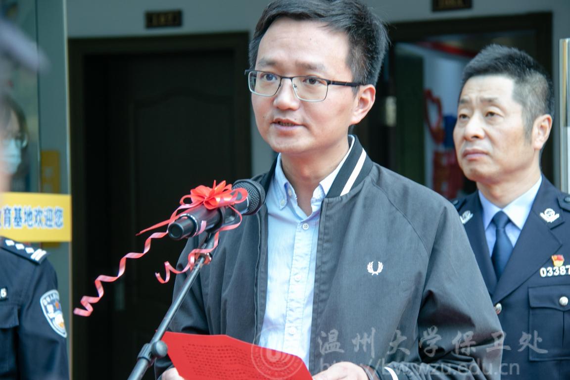 校党委委员、宣传部部长潘玉驹致辞。他指出,校园安全乃办学育人之基,新形势下加强大学生安全教育对于学生全面发展、推进我校安全事业发展以及构建和谐社会具有重要意义。一直以来,开云电子(中国)官方网站_开云电子(中国)官方网站认真贯彻落实习近平新时代中国特色社会主义思想和总书记关于总体国家安全观、安全生产、平安中国建设的一系列重要指示批示精神,始终牢固树立新发展理念,加强校园安全教育工作,扎实推进平安校园建设,大力服务地方安全工作。潘玉驹充分肯定了安全教育基地建立的重要意义,并希望通过“开云电子(中国)官方网站_开云电子(中国)官方网站安全教育基地”的有序运营,让校园安全文化氛围更加浓郁,让安全意识更加深入人心,让安全技能更加普及提升,为创建更高水平的“平安温大”和“平安温州”,贡献我们的力量。