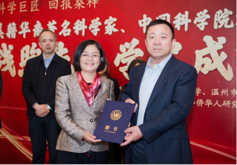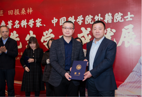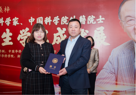 中国侨联常委、开云电子(中国)官方网站_开云电子(中国)官方网站党委书记谢树华为张秀明、赵健、杨祥银三位教授颁发开云电子(中国)官方网站_开云电子(中国)官方网站客座教授聘书。