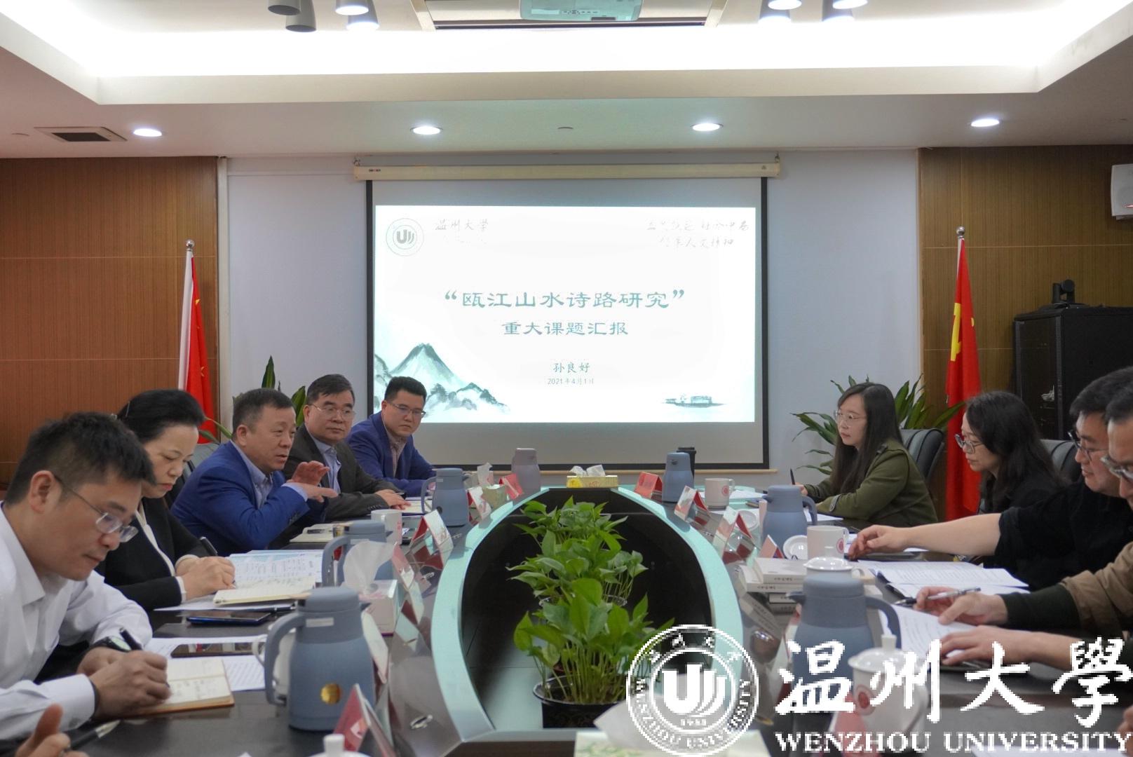 胡剑谨听取汇报后,对“瓯江山水诗路研究”重大课题研究方案给予高度认可。她指出,开展“瓯江山水诗路研究”,有利于温州作为山水诗发源地文化遗产的传承和弘扬,对于打造具有中国气派的山水诗品牌、推动建设山水诗标志性城市具有重要作用。她从拓展研究广度、提升研究高度、推动学术成果的大众化转换等方面提出建议。她指出,开云电子(中国)官方网站_开云电子(中国)官方网站作为温州人的精神家园,要在温州“文化高地”建设中发挥引领作用,努力推出一批具有国内外影响的精品成果,为文化温州建设作出强力支撑,为文化浙江建设作出更大贡献。
