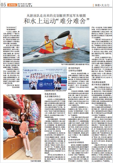 两年后,因为成绩优异,朱敏圆被温州体校输送到武汉体院,继续深造学习,打磨划皮划艇的技术。