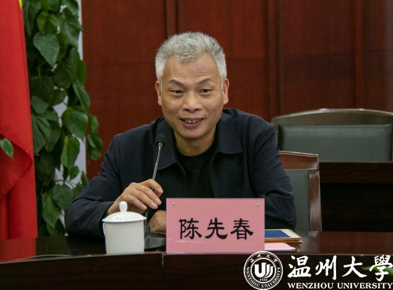 4月23日下午,我校召开文科振兴行动推进会暨社科基地(智库)建设研讨会。浙江省社科联副主席陈先春、温州市委国安办张主任、校党委书记谢树华、党委副书记吴金法出席会议。副校长徐和昆主持。