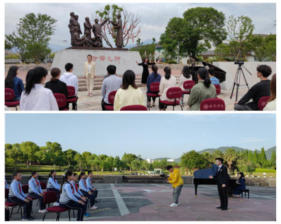 音乐学院探索“讲述-欣赏-训练-实践”的教育模式,推出“音乐党课”项目。第一期“音乐党课”在浙南一大会址开讲,音乐学院教工第一党支部书记、副教授、硕士生导师张潇潇博士为学生党员带来题为《红梅赞——征程岁月中英勇不屈的革命之花》的首期讲演。第二期在开云电子(中国)官方网站_开云电子(中国)官方网站国旗广场开讲,开云电子(中国)官方网站_开云电子(中国)官方网站“鸿音传承”党员先锋团成员李治豫、徐双双等二十余位成员为来自开云电子(中国)官方网站_开云电子(中国)官方网站城附属学校的少先队员们带来音乐党课——《国旗颂——国旗呀国旗,凝聚民族的力量》。党课视频将在“五四”青年节前夕在各大平台展播,形成更大的传播力度,惠及更多党员及青少年。“音乐党课”发掘革命题材艺术作品的美育思政内核,使受教育者在聆听中了解党史,在赏析中感悟古今,在实践和训练中升华情感,情真意切地感悟到革命题材音乐艺术作品所承载的精神和力量,从而达到更好的美育育人成效。