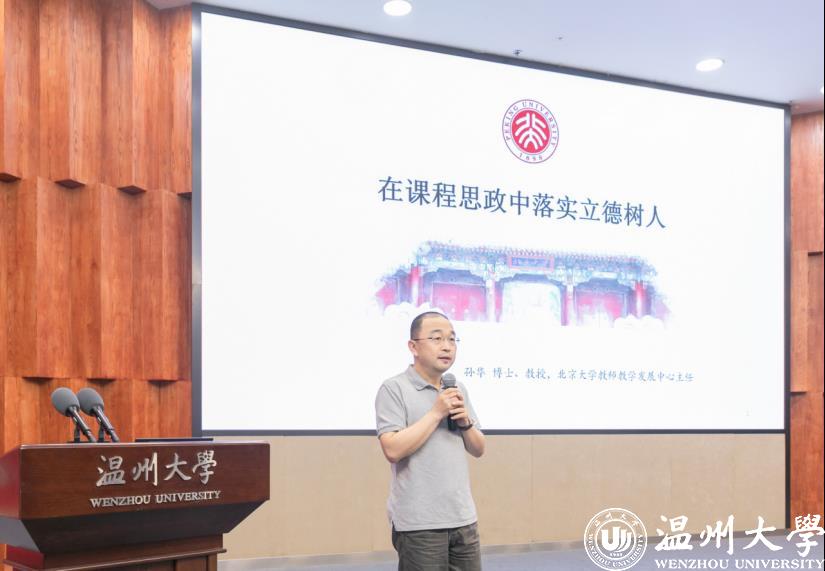 孙华在题为《在课程思政中落实立德树人》的主旨报告中指出,课程思政是全新的教育理念,是新时代教育课程理念的创新和升华,课程思政是落实立德树人根本任务的战略举措。他重点介绍了如何在课程思政教学中更好地发挥教师主导和学生主体作用。他提出,一是要让教师理解课程思政是落实立德树人的战略举措,二是要在专业教学中总结、提升和凝练课程思政的经验,三是要在教学设计中通过学生参与让课程思政入脑、入心。他强调,在课堂教学中开展课程思政要把握不同院系特点,挖掘特色素材,充分发挥课堂教学、专业实习、社会实践等多阵地多渠道作用,做到春风化雨、润物无声。他还紧密结合北京大学课程思政的教学案例,分享了北京大学在推进课程思政教学改革、发挥课程育人功能等方面所取得的成就,为我校全面推进课程思政建设提供了宝贵经验。