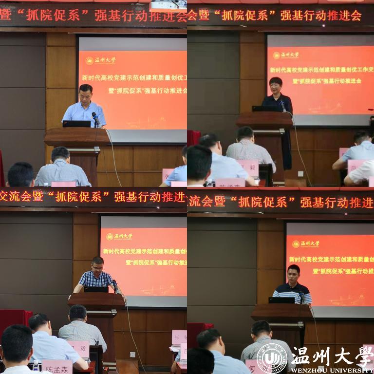 会议分为两个阶段。第一阶段,与会人员现场观摩化材学院全国样板支部党建阵地,学习化材学院全国样板支部的建设经验。第二阶段,教育学院党委、马克思主义学院教工第一党支部、电气学院党委、党委组织部就党建“双创”和“抓院促系”工作交流经验。