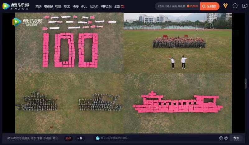 土木工程专业孟雅静同学演唱的自创红歌《红色的骄傲》刚落下尾声,随着配音"风雨飘摇时期,有这样一只红船激发着人民的革命热情和战斗意志......"响起,方阵"红船"横空出世,寓意"红船"给落后愚昧的旧中国引进了先进科学的马克思主义,载着中国共产党人登上救亡图存的历史舞台;在《没有共产党就没有新中国》的嘹亮歌声中,方阵以排山倒海之势演绎出"1921-2021""100"字样,寓意中国共产党人正是乘着这艘"红船"从生灵涂炭的旧社会中一路驶来,驶向了百废待兴的新中国,驶进了蓬勃发展的新时代,完成了这跨世纪的百年伟大航程。