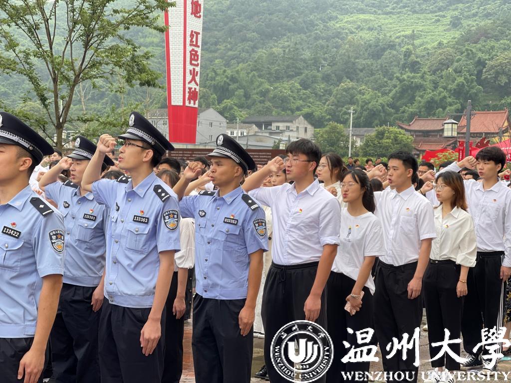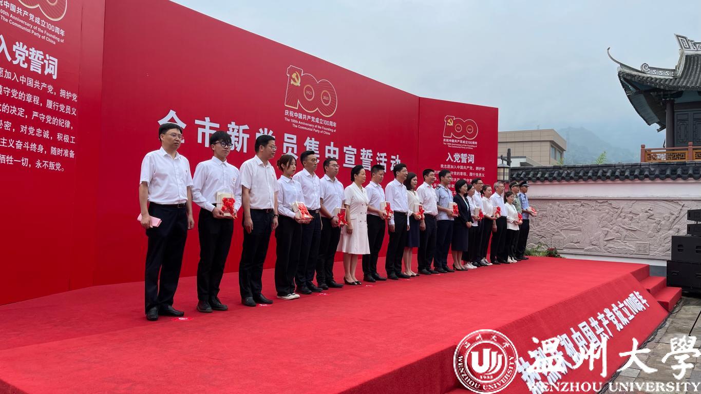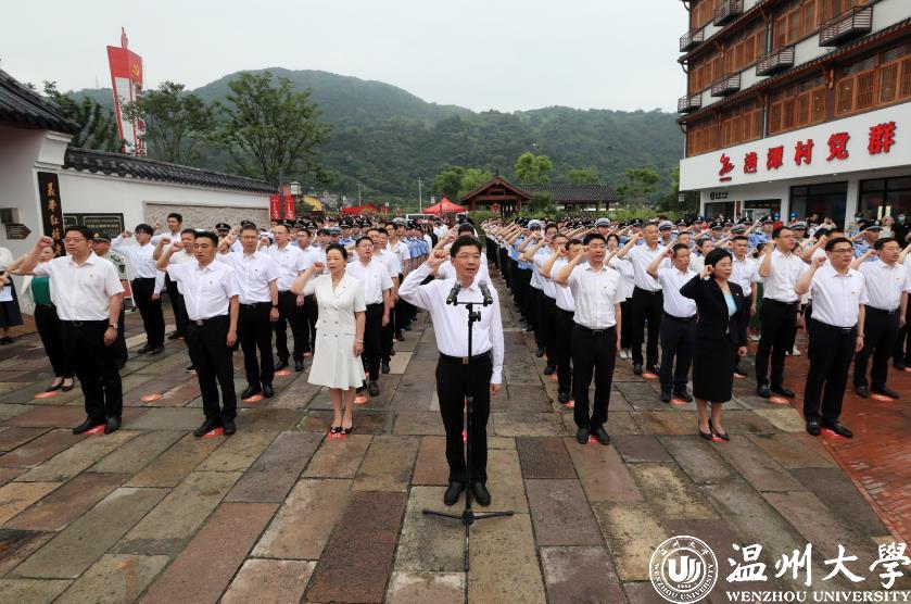 作为高校单位,我校师生党员21人在主会场瓯海区中共浙南一大会址参加集中宣誓活动。