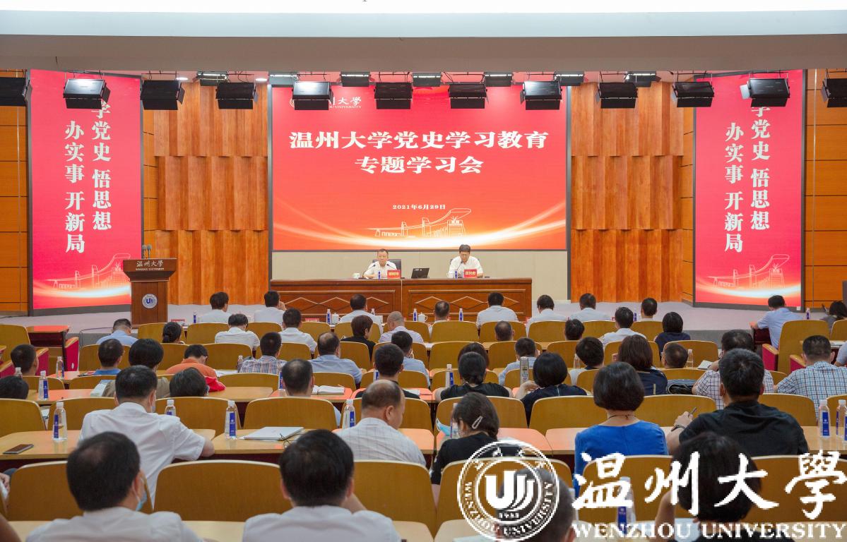 6月29日下午,我校举行党史学习教育第四次专题学习会。全体校领导出席会议。校党委副书记庄兴忠主持。