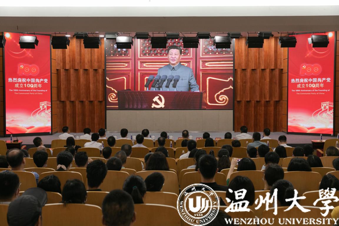 7月1日上午,庆祝中国共产党成立100周年大会在北京天安门广场隆重举行,中共中央总书记、国家主席、中央军委主席习近平发表重要讲话。全体校领导、机关党员于岩松堂雁山厅主会场,其他二级党组织党员、师生党员于各学院分会场观看庆祝大会。