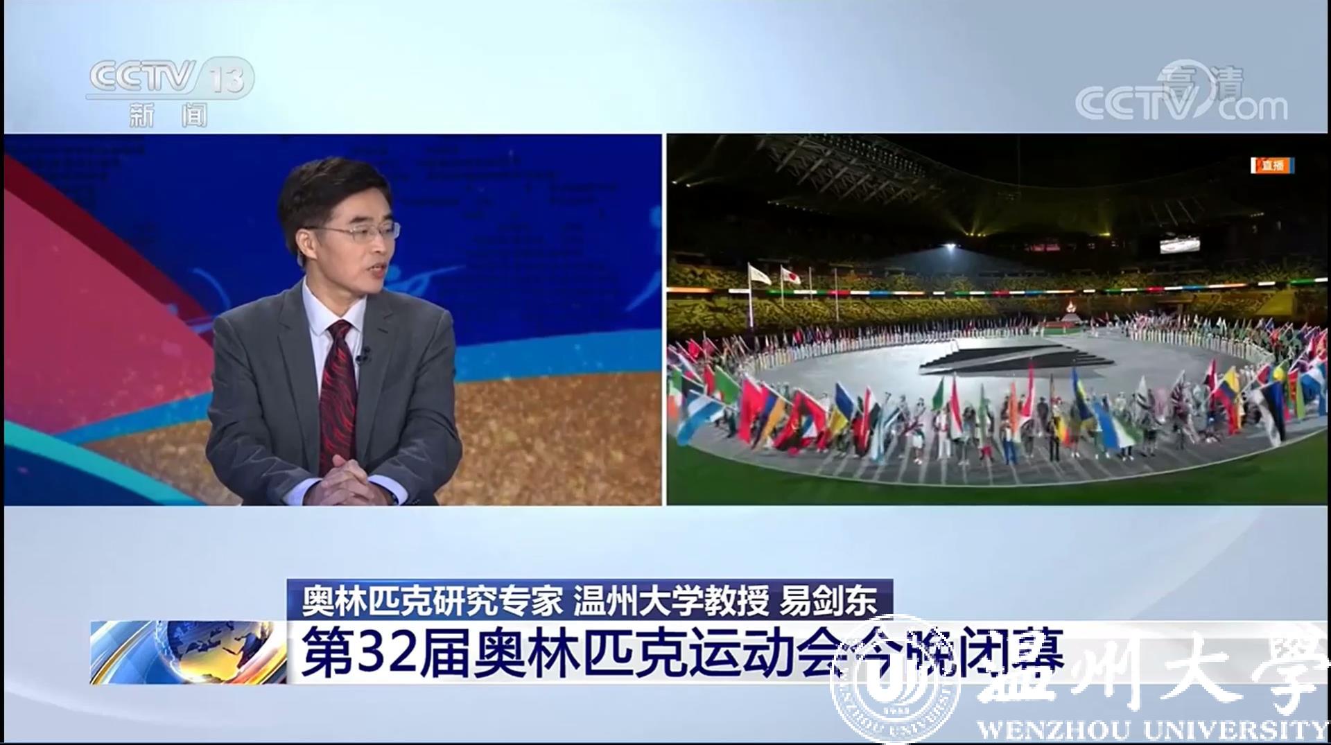 8月8日,我校易剑东教授接受央视新闻频道特别节目专访,就当晚正在进行的第32届奥运会闭幕式直播进行相关解读。此前易剑东教授曾接受中央电视台“东方时空”栏目专访,就本届奥运会开幕式直播进行过相关解读。