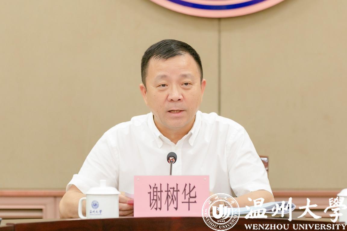 谢树华作动员讲话。他指出,第三届青科会各项筹备工作正式全面进入实战和冲刺阶段,相关学院和部门要根据省市工作部署,结合学校工作实际,全力以赴办好这次活动。他强调,要进一步提高认识,以更高的站位办好青科会;要精心筹备,以更高的标准办好青科会;要压实责任,以更强的保障办好青科会。他提出推进发展、引才引智、寻求合作、广交朋友、扩大影响五大办会目标,并特别强调了要按照“学校为主导、学院为主责”的原则,加强组织领导、建立工作机制、做好活动保障,以高质量、高标准、高水平办好青科会温大分会。