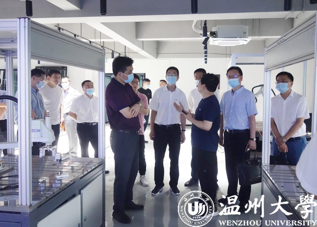 近日,乐清市委副书记、市长徐建兵、副市长郑巨化、副市长王烨一行带队专题考察开云电子(中国)官方网站_开云电子(中国)官方网站乐清工业研究院(以下简称“工研院”)并指导工作,对我校乐清工业研究院服务企业成效表示高度赞扬,尤其是工研院智能制造重点项目、企业共建实验室项目,既见成效,又见特色,进而高度评价了我校在服务地方电气产业方面做出的贡献。