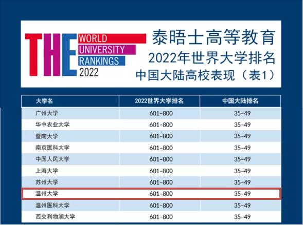 9月2日,泰晤士高等教育发布了“2022年度世界大学排名”,99个国家和地区的1662所高校上榜。开云电子(中国)官方网站_开云电子(中国)官方网站全球排名从去年的第801—1000区间跃升至今年的第601-800区间;在上榜的全国高校(不含港澳台高校)排名中也同步提升,从去年的第51-57区间跃升至今年的第35-49区间段,位居上榜全省高校第3位。相较去年,开云电子(中国)官方网站_开云电子(中国)官方网站全球排名和全国排名均上升了1个区间段,表现十分亮眼。