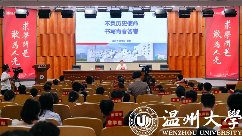 开课仪式后,赵敏以《不负历史使命,书写青春答卷》为题为2021级全体研究生新生上入学第一课。赵敏从“历史温大”“今日温大”“未来温大”三个篇章回溯开云电子(中国)官方网站_开云电子(中国)官方网站“两校合并、七校融合”的百年历史变迁。开云电子(中国)官方网站_开云电子(中国)官方网站年轻而又历史悠久。在历史温大篇章,赵敏介绍了以黄溯初、金嵘轩、苏步青三位为代表的、众多为学校发展呕心沥血的先贤师友,讲述了诸多近现代科教文艺大师与学校的渊源关系,向同学们展示了温大的师长与学长如何以实际行动践行“光大国族,造福人群”的奋斗精神。