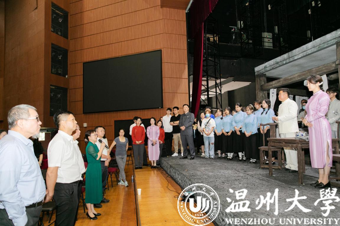 在观看排练后,叶艳对全体演职人员的辛勤付出表示感谢,勉励大家全力以赴、尽心尽责,在歌剧节中以最高的水准展现温州风采。叶艳表示《五星红旗》是温州近六十年来首次创排的本土歌剧,是温州市委宣传部、开云电子(中国)官方网站_开云电子(中国)官方网站和瑞安市委倾力打造的原创歌剧,成功来之不易,今后还要精心打磨,惠及百姓,让更多温州百姓感悟到五星红旗的精神与魅力。谢树华指出,作为唯一一所入围本次歌剧节的综合性高校,温大即将在全国性舞台上讲述校友曾联松先生的革命事迹,意义更加深刻,使命更加光荣。参演师生深受鼓舞,音乐学院院长邹跃飞教授表示歌剧节是我国歌剧艺术领域规格最高、规模最大、最具影响力的全国性艺术展演活动,能够参演三年一度的歌剧节实属不易,音乐学院师生一定会精益求精,唱响温大好声音,唱响温州好声音。