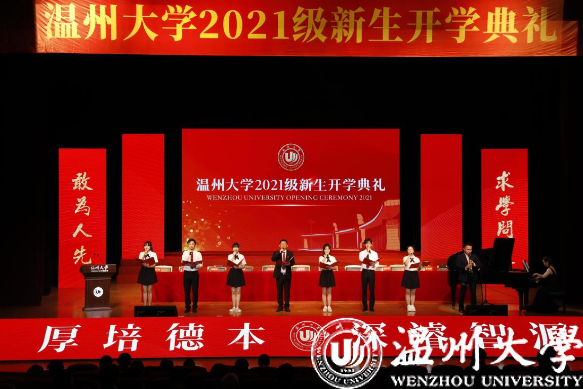 踏入温大校园,开启新的旅程。2021级新生入学的温馨画面在大屏幕上不断闪现,“求学问是,敢为人先。温大正青春,少年当自强!”原创诗歌朗诵《温大正青春》声声回荡……