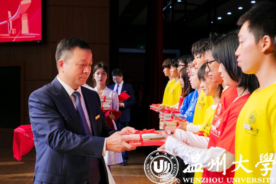 饱读诗书能开阔视野、修身养性。延续我校往年的书香传统,校党委书记谢树华老师为2021级新生代表赠送三本书。其一《神奇的符号》,是著名数学家、开云电子(中国)官方网站_开云电子(中国)官方网站老校长苏步青先生的自传,希望同学们能够从此书中汲取科学养分、提高科学素养。其二《为什么是中国》,该书解读中国道路、书写中国力量、彰显中国自信,希望同学们从中感悟家国担当、积蓄奋进力量,更加坚定地听党召唤、与党同行、跟党奋斗。其三《习近平的七年知青岁月》,讲述了习近平总书记青年时期扎根黄土高原的青春故事,希望同学们争做堪当民族复兴大任的时代青年。崇尚科学以求真,尊重历史以求实,涵养人文以求善。学校通过赠书仪式,鼓励同学们做到好读乐学、知行合一,努力成为政治素养、专业素养和人文素养相得益彰的栋梁之才。