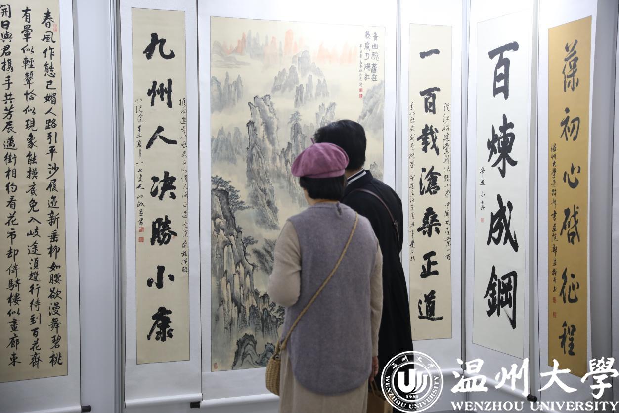 一笔笔涌动的浓墨,一幅幅斑斓的色彩,一张张纷呈的画卷,一卷卷记忆的永恒。本次活动,老干部书画院组织离退休老干部们以饱满的激情、传神的笔墨,潜心创作。其中有学校老领导、有逾50年党龄的老党员、有90岁以上高龄的老教授,还有众多长期坚持文化公益的老书画家们。他们从确定内容、征集作品、甄选精品到装裱制作,前后历时半年,展出60幅书画作品。这些作品意境深邃与情志高远,充分表达了老干部对党和国家的真挚情感,展现了老干部们崇高的思想艺术境界和弘扬中华民族传统书画艺术、笔耕不辍的精神风貌。