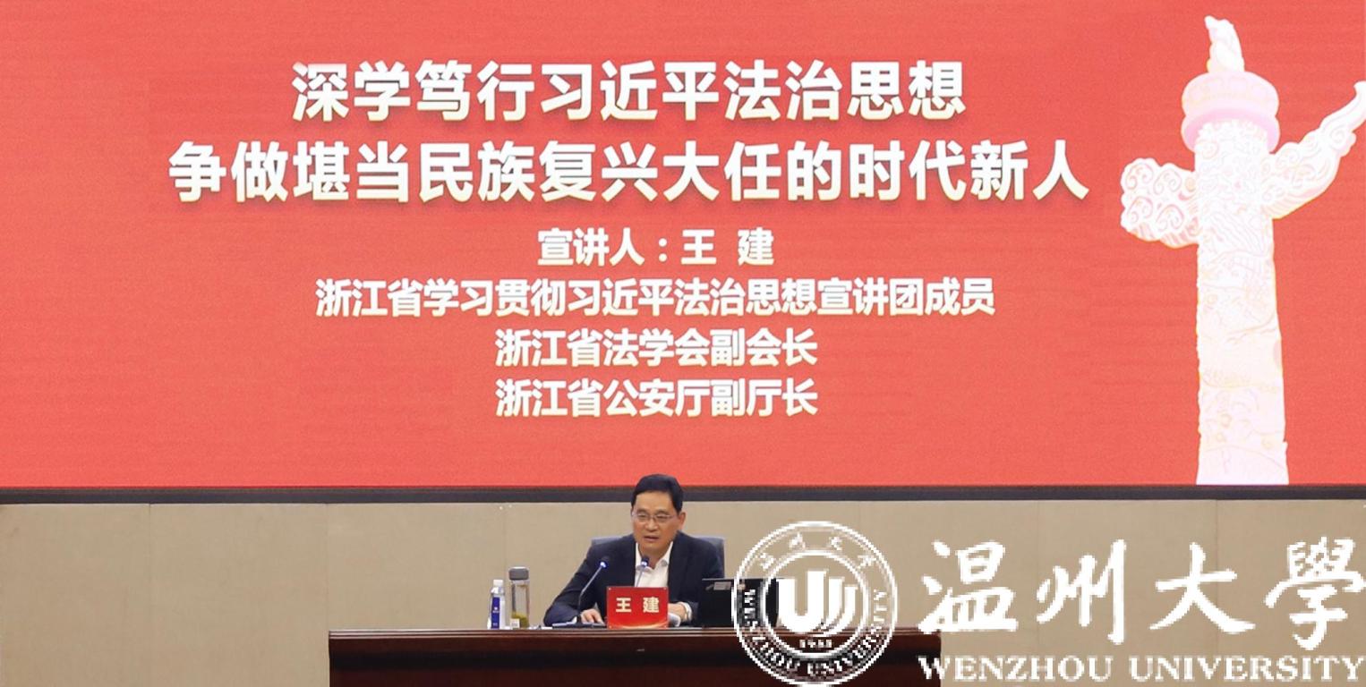 谢树华在主持报告会时指出,王建副厅长的报告高屋建瓴、内涵丰富、深入浅出,既有理论高度、实践深度,又有时空广度、情怀温度,对于我校深入学习贯彻习近平法治思想,不断提升学校法治建设水平,增强依法治校能力,具有很强的针对性和指导性。谢树华要求全校干部师生以此次宣讲会为契机,以更高的政治站位、更强的责任担当,学懂弄通习近平法治思想,不断深化学校机构、人事、制度等各领域改革,完善学校法治体系建设,提升学校治理法治化水平,为高校法治化建设提供“温大样板”,为浙江建设“法治中国示范区”贡献“温大力量”,在忠实践行“八八战略”、奋力打造“重要窗口”中展现“温大担当”。
