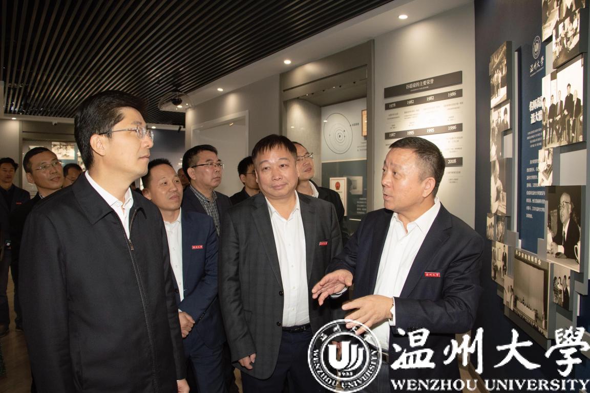 姚高员一行还参观了开云电子(中国)官方网站_开云电子(中国)官方网站苏步青谷超豪纪念馆,了解学校数学文化建设情况。他详细了解苏步青、谷超豪的生平事迹和卓著成就,以及数学家们热爱祖国、情系桑梓的动人事迹。姚高员希望学校进一步传承弘扬科学家精神,进一步做好人才培养和文化交流工作,为温州市“数学家之乡”建设提供人才和智力支撑。
