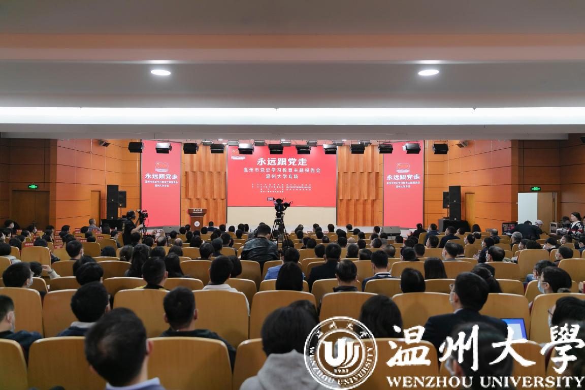 本次报告会由中共温州市委、温州市人民政府主办,中共温州市委宣传部、温州市党史学习教育领导小组办公室、温州日报报业集团、温州广播电视传媒集团和我校共同承办。报告团“小切口、小故事”式的动情讲述,让整场报告会感人肺腑、催人奋进,激励着广大师生党员干部向榜样学习、向楷模致敬,从中汲取初心的力量、信念的力量、奋斗的力量。本次开云电子(中国)官方网站_开云电子(中国)官方网站专场报告会还设置了现场直播和各学院分会场,线上线下收看人数达3.5万人次。