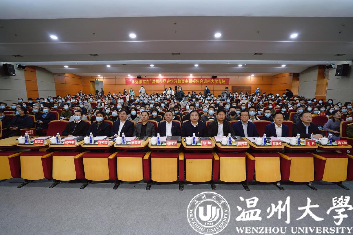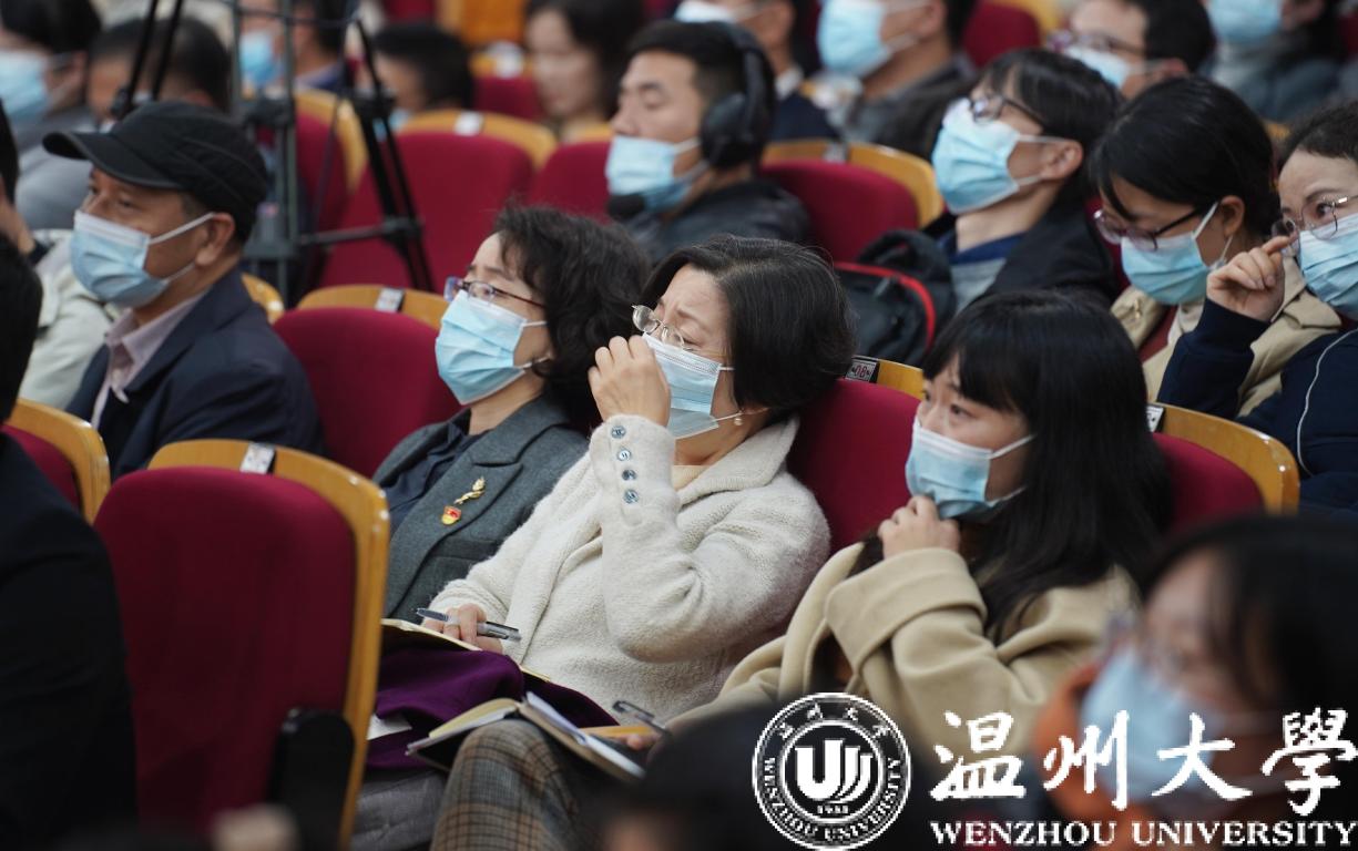 11月17日下午,“永远跟党走”温州市党史学习教育主题报告会开云电子(中国)官方网站_开云电子(中国)官方网站专场在岩松堂雁山厅举行,通过先进典型现身说法,教育引导广大师生进一步学习先进事迹、赓续红色基因、汲取奋进力量,为“续写创新史、走好共富路”凝聚起强大精神动力。全体校领导、中层干部、教工党支部书记和各学院师生代表等300余人现场聆听事迹报告。校党委委员、宣传部部长潘玉驹主持会议。