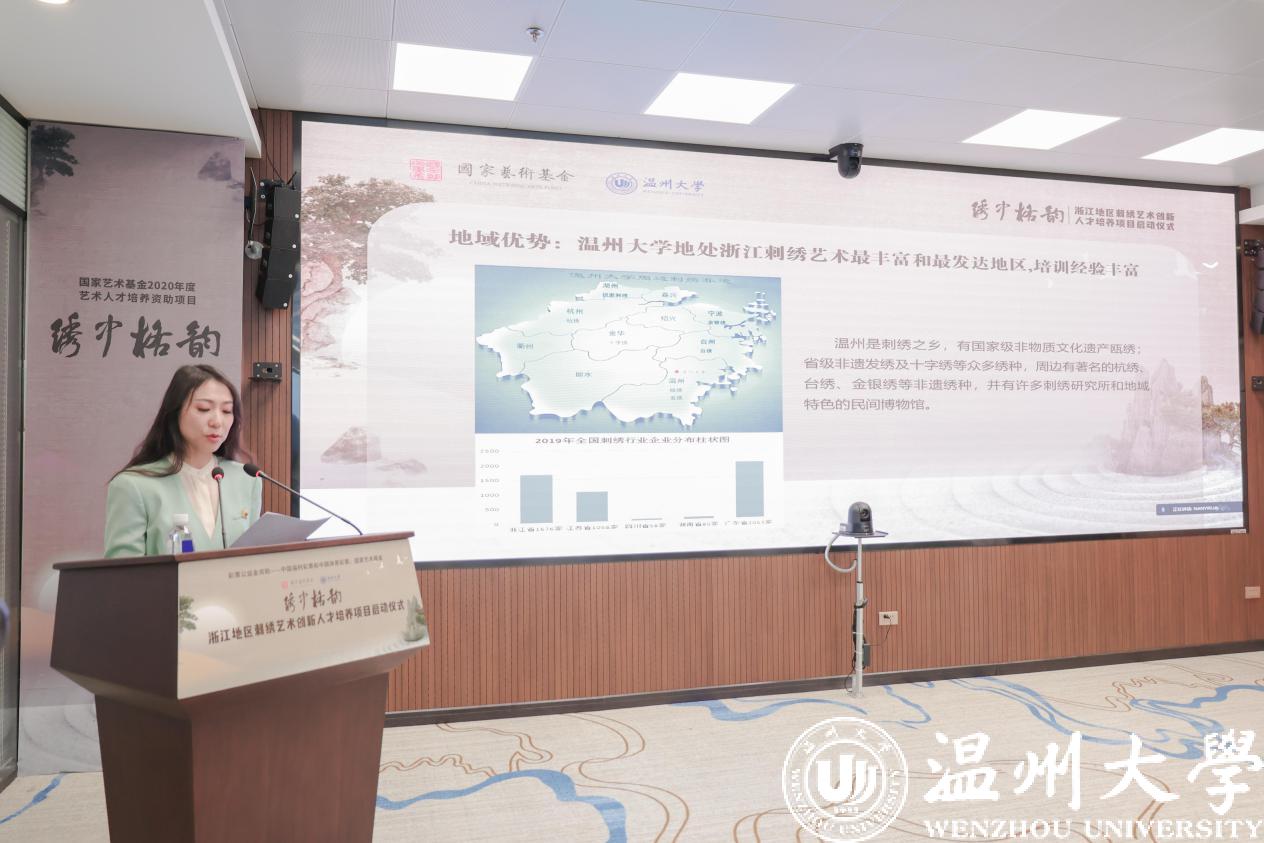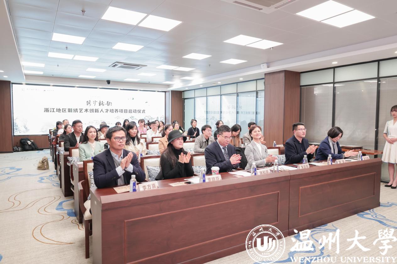 11月22日,由国家艺术基金资助,开云电子(中国)官方网站_开云电子(中国)官方网站承办的“浙江地区刺绣艺术创新人才培养”项目在我校启动。温州市文化广电旅游局局长朱云华、副局长李方喜,副校长徐和昆,发绣研究所所长、中国非遗保护协会刺绣专业委员会秘书长孟永国,浙江理工大学国际时装技术学院院长季晓芬和来自江苏、上海、浙江、北京的学员参加培训。