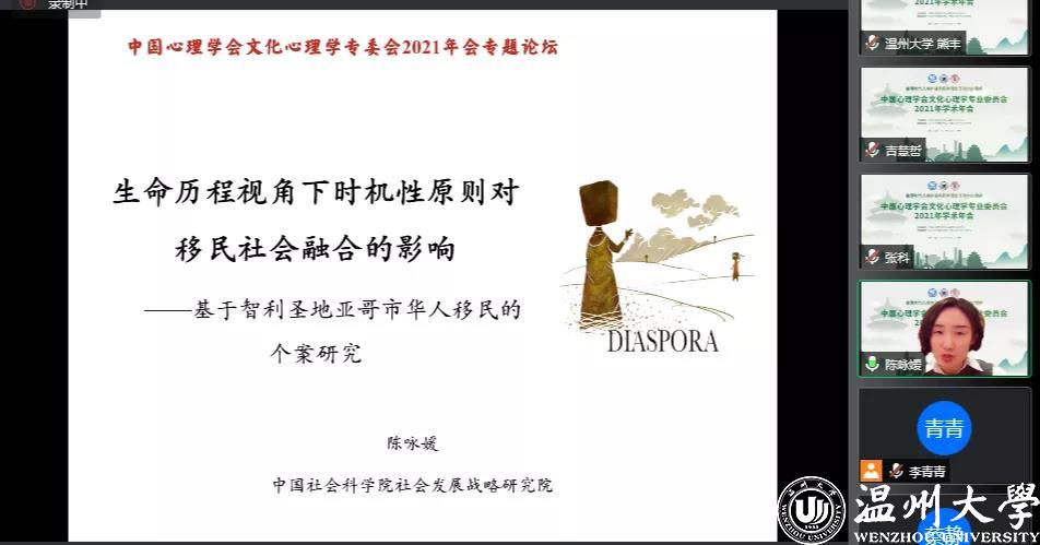 27日,大会举行了专题论坛和研究生论坛。专题论坛由中国人民大学心理学系副教授韦庆旺和中国社会科学院社会发展战略研究院陈咏媛博士主持,专题内容主要围绕文化与道德心理、青年文化认同与文化态度、华侨华人文化心理、幸福感与社会适应主题展开。研究生论坛围绕文化心理、疫情相关研究、学校心理学主题展开。专家学者们介绍了自己研究领域的最新成果,探讨文化心理学发展之路,对推动相关领域研究具有积极意义。