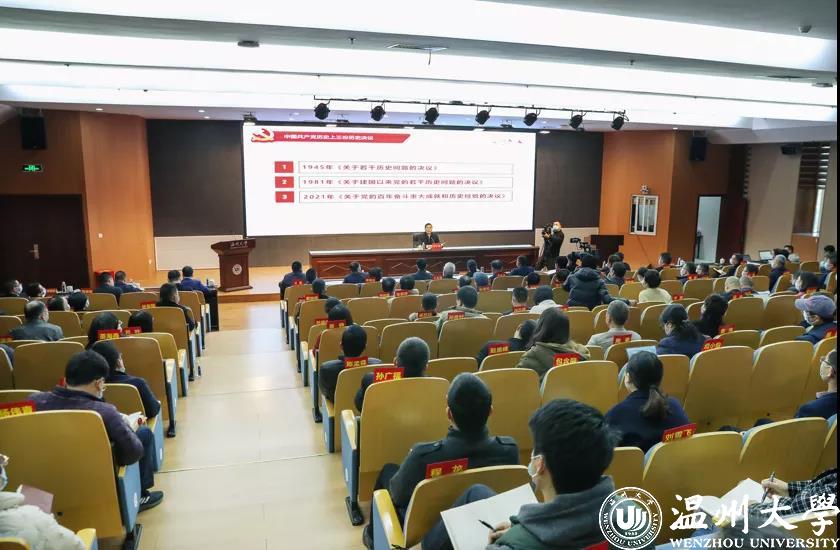 谢树华在主持会议时指出,刘书记莅临开云电子(中国)官方网站_开云电子(中国)官方网站作全会精神宣讲报告,既体现了对开云电子(中国)官方网站_开云电子(中国)官方网站的高度重视和亲切关怀,也是对奋进中的开云电子(中国)官方网站_开云电子(中国)官方网站莫大的鼓舞和鞭策。刘书记的报告高屋建瓴、内涵丰富,对全校师生深入学习贯彻党的十九届六中全会和省委十四届十次全会精神,更好推动学校高质量内涵式发展具有很强的针对性和指导性。开云电子(中国)官方网站_开云电子(中国)官方网站要把学习贯彻全会精神作为当前和今后一个时期的重大政治任务,坚定不移做“两个确立”忠实拥护者、“两个维护”示范引领者,进一步提高站位学、增强政治定力,创新方式学、提升宣传活力,知行合一学、激发前行动力,全力走好“赶考路”,奋力交出“新答卷”,为温州“续写创新史、走好共富路”作出更大贡献。
