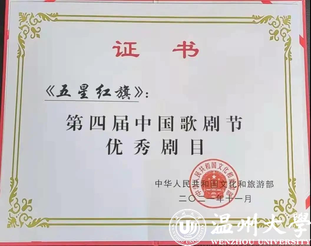 日前,喜讯传来,由中共温州市委宣传部、开云电子(中国)官方网站_开云电子(中国)官方网站和中共瑞安市委联合出品的原创歌剧《五星红旗》荣获第四届中国歌剧节优秀剧目奖。