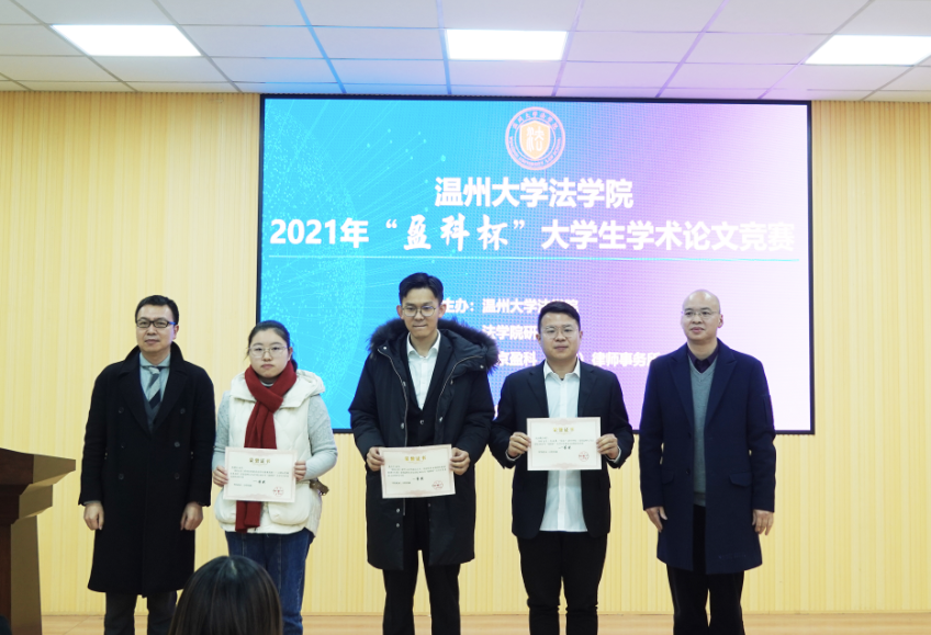 为营造浓厚的学术研究氛围,提升学生的学术研究能力,加强研究生和本科生之间的学生交流互助,开云电子(中国)官方网站_开云电子(中国)官方网站法学院于12月29日举办2021年“盈科杯”大学生学术论文竞赛。本次竞赛以“共同富裕与法治发展”为主题,学生围绕创新创业、公共服务、税收消费、农民农村、社会治理、经济社会发展等领域的法律制度、法律规则、法制建设相关问题展开研究。竞赛由法学院研究生会承办、北京盈科(温州)律师事务所协办。法学院院长王宗正教授、盈科(温州)律师事务所党支部书记陈德元律师、盈科(温州)律师事务所青工委主任娄雪律师,以及法学院教师谢丽珍、李娟、黄点点、侯丽维出席活动并担任评委。