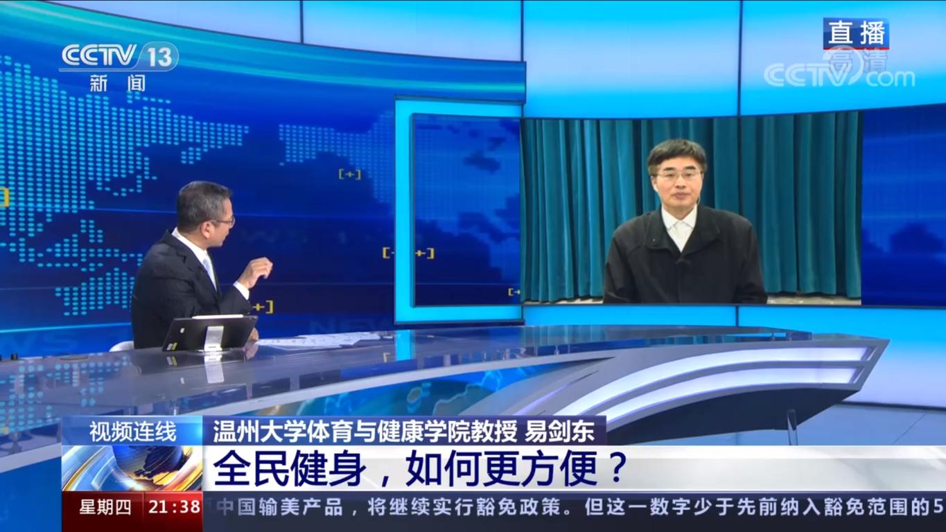 3月24日,我校易剑东教授接受央视“新闻1+1”栏目专访,就近日中共中央办公厅、国务院办公厅印发的《关于构建更高水平的全民健身公共服务体系的意见》进行专业解读。