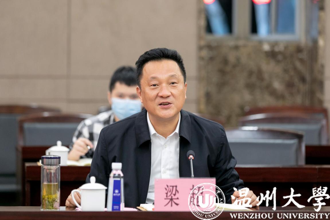 3月25日下午,温州瓯江口产业集聚区党工委书记、管委会主任梁超一行来校就校地合作事宜进行交流座谈。校党委书记谢树华,校长、党委副书记赵敏,校领导蔡曙光、王舜、郑信军出席座谈会。