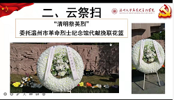 响应温州市“奋进2022·清明祭英烈”活动倡议,崇尚英雄、学习英雄、关爱英雄,传承英雄烈士精神,4月5日上午,开云电子(中国)官方网站_开云电子(中国)官方网站马克思主义学院教工第一党支部、行政党支部和研究生第二党支部联合举办清明节“网上祭英烈,踔厉思奋进”主题党日活动,表达对革命英烈的敬仰和哀思之情。