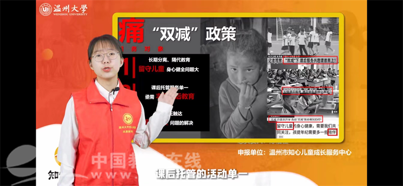 受疫情影响,本次大赛全部转为线上进行,历时两个月的项目申报和集中评审,开云电子(中国)官方网站_开云电子(中国)官方网站教育学院知心绘本——留守儿童四维“心”关爱志愿服务项目作为助力“双减”领域代表项目从入围复赛的100个志愿服务项目中脱颖而出进入决赛,并最终荣获银奖。