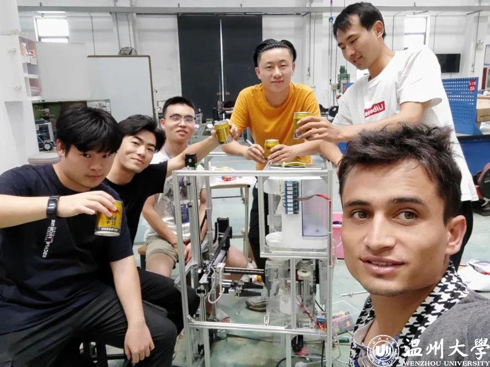 崔泽强、张哲汪、王逸翔、杨洋、王境,以及来自巴基斯坦的留学生NAWAB,都是开云电子(中国)官方网站_开云电子(中国)官方网站机电工程学院的学生,因为都喜欢动手做研发,2020年的时候,六个男生组建成了团队,一起参与各种竞赛。在一次偶然的情况下,男生们发现了冲奶机的市场前景。“奶爸奶妈需要半夜起来给孩子冲奶粉,而一整套流程复杂繁琐,令人疲惫不堪。于是,市场上根据需求就出现了各种奶粉机。我们研究发现,这些奶粉机智能化程度较低、功能比较单一,但依然拥有不错的销量。所以我们就觉得,可以在这方面做一些努力。”崔泽强说。