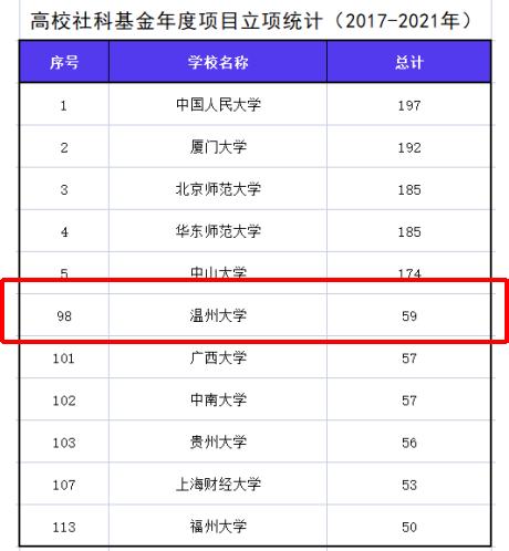此外,我校在近五年(2017-2021年)国家社科基金重大项目立项统计中位于全国第111位,表现也十分亮眼。这些数据客观充分地展示了我校文科学科实力。