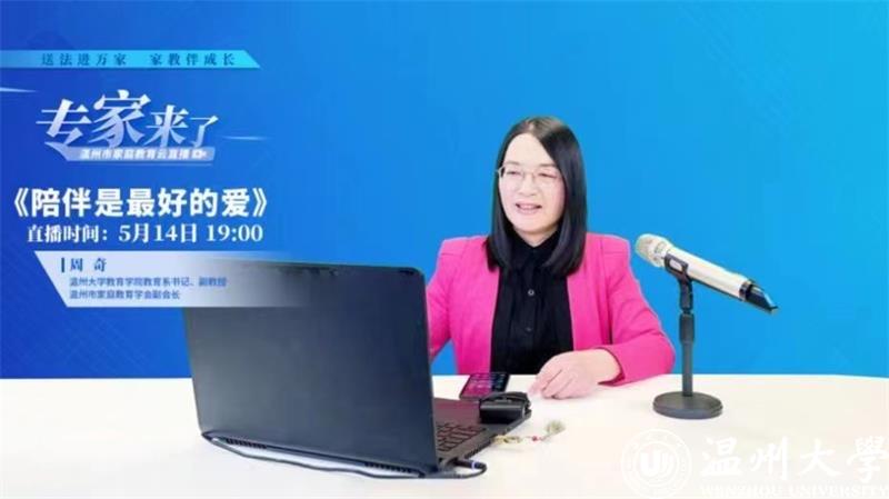 为深入贯彻习近平总书记关于注重家庭家教家风建设重要论述,将“重视家庭文明建设,努力使千千万万个家庭成为国家发展、民族进步、社会和谐的重要基点”重要精神落到实处,有力推动《中华人民共和国家庭教育促进法》宣传实施,2022年5月14日,在全国首个家庭教育宣传周期内,开云电子(中国)官方网站_开云电子(中国)官方网站教育学院教育系党支部书记、副教授、硕士生导师,开云电子(中国)官方网站_开云电子(中国)官方网站家庭教育研究院巾帼文明岗岗长、开云电子(中国)官方网站_开云电子(中国)官方网站家庭家教家风讲师团团长、浙江省教育学分会副会长、浙江省家庭教育学会理事、温州市家庭教育学会副会长周奇做客“专家来了”温州市家庭教育云直播,开展《陪伴是最好的爱》家庭教育公开指导课。本次直播以“送法进万家 家教伴成长”为主题,旨在弘扬传承中华民族家庭美德,树立良好家风,推动形成家庭文明新风尚。整场直播吸引了12.5万人次观看,并获得2万多的网友点赞。