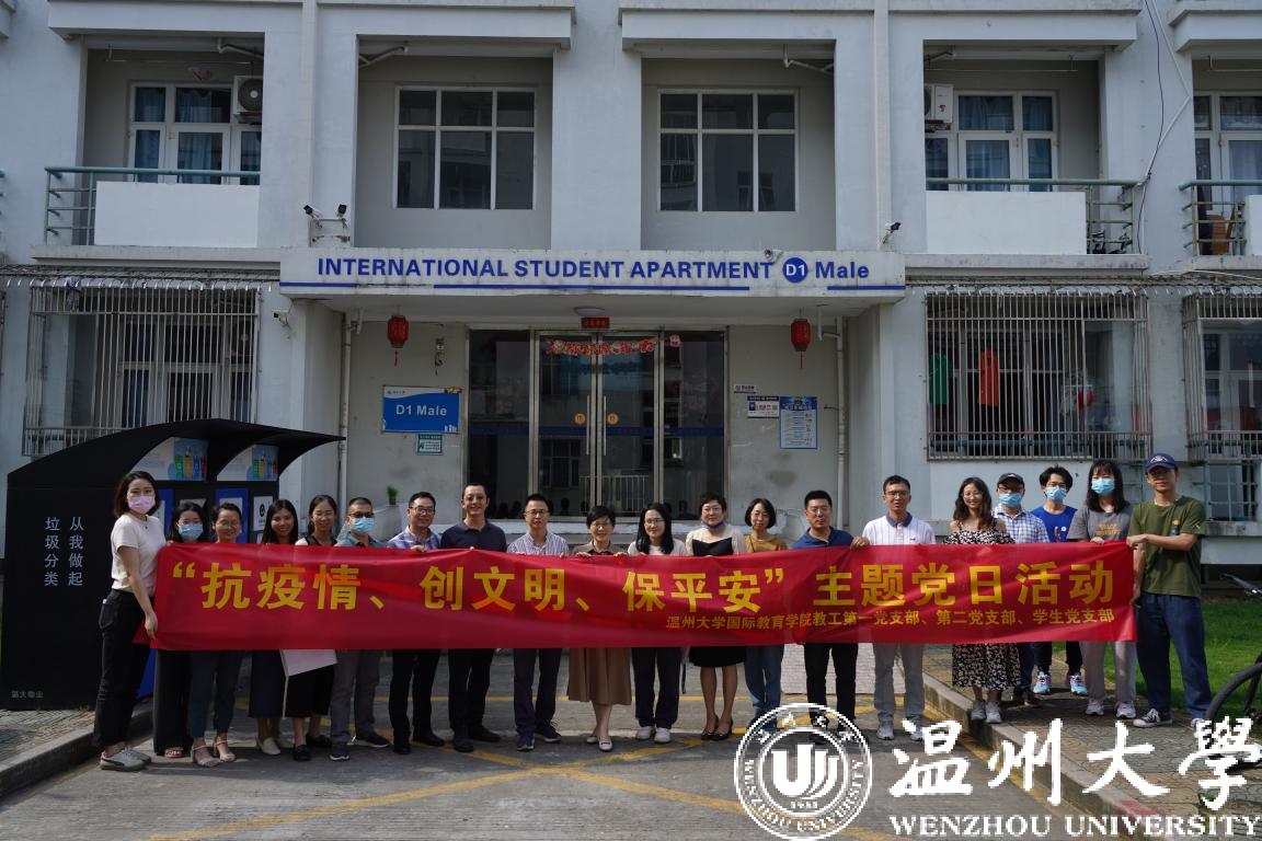 国际教育学院党总支组织教工第一党支部、第二党支部、学生党支部联合开展主题党日活动。全体党员在创建文明城市倡议书上郑重签下自己名字,以充满仪式感的方式形成共识、凝聚力量,确保疫情防控工作和文明城市创建工作稳定有序推进。在学校D区国际学生公寓,支部党员分成五组上门点对点向国际学生宣讲当前疫情防控政策,逐条向留学生们讲解了文明城市创建倡议书的内容,号召同学身体力行,共同参与文明城市创建工作。为提醒国际学生安全骑行,师生党员在每一辆电动车上贴上了安全骑行提示语,简短的话语蕴含了学院对同学们的关心与爱护。