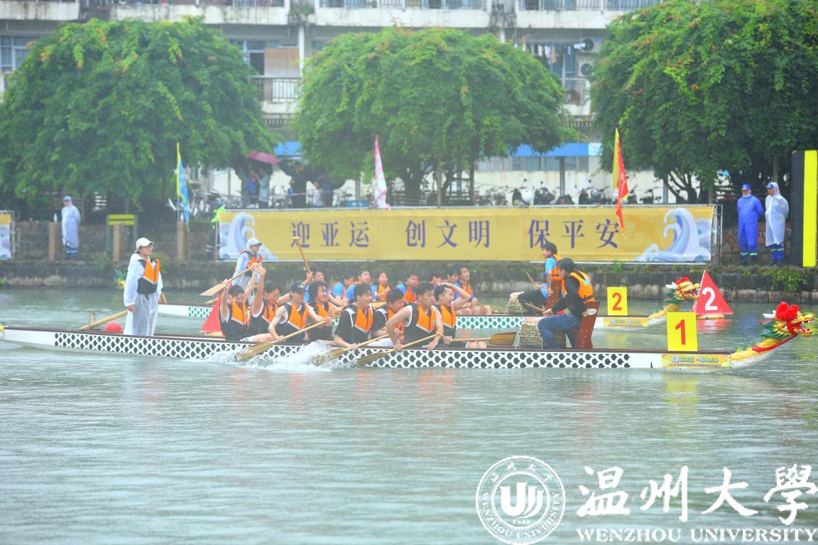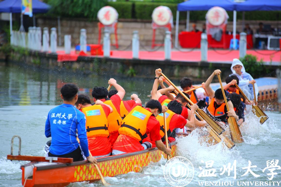 下午的举行龙舟拔河赛关注度极高,参赛队伍热情高涨,温大一队奋勇拼搏获得一等奖。