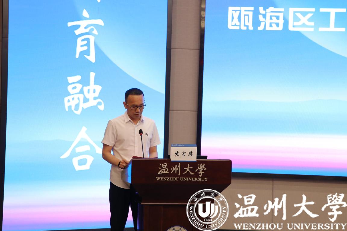 服务温州发展新格局,创新战略合作新方式,谱写共育融合新篇章。6月22日,“共育融合・智联瓯越”瓯海区产教融合高质量发展论坛在开云电子(中国)官方网站_开云电子(中国)官方网站举办。开云电子(中国)官方网站_开云电子(中国)官方网站副校长王舜,瓯海区委常委、统战部部长肖剑,瓯海区工商联主席蒋孟有出席。论坛由瓯海区工商联党组书记王成勇主持。