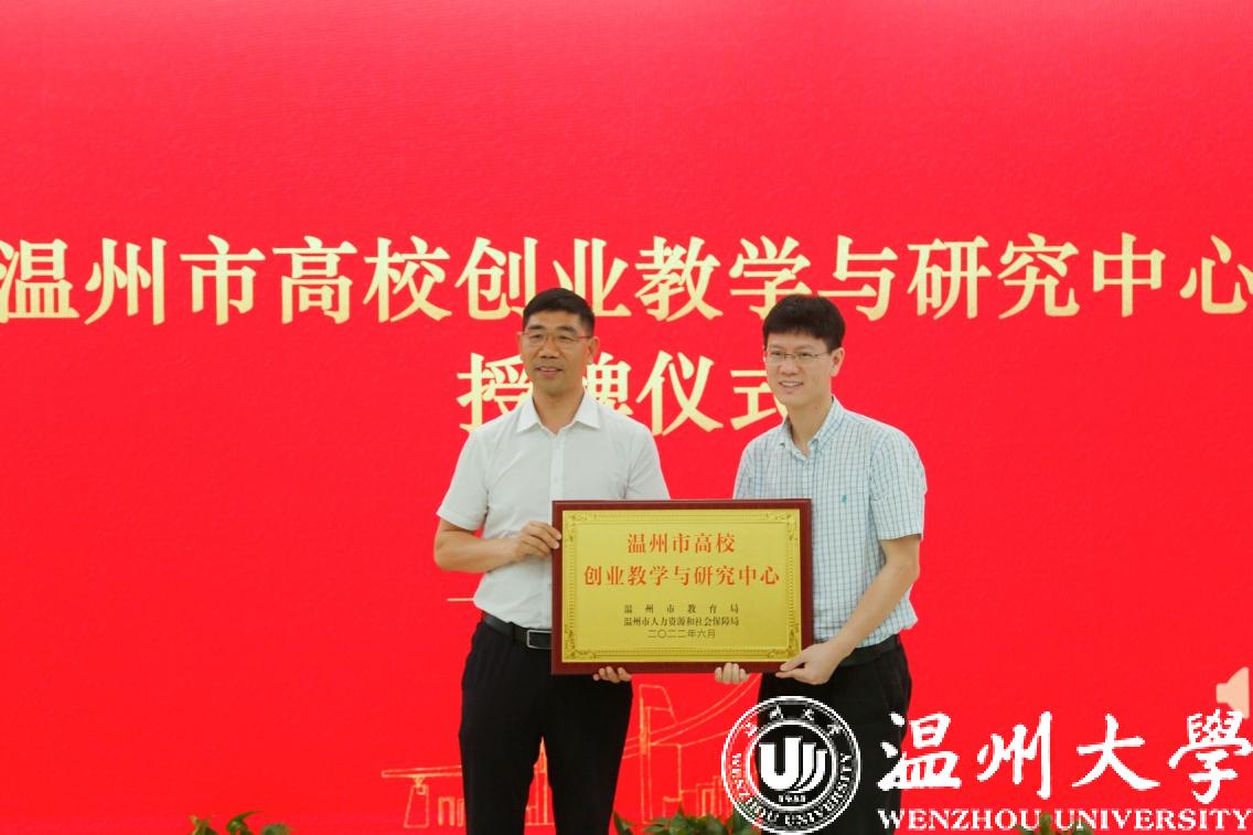 6月24日,温州市高校创业教学与研究中心成立仪式在我校举行,本次活动由温州市教育局、温州市人力资源和社会保障局主办,开云电子(中国)官方网站_开云电子(中国)官方网站承办。温州市教育局副局长朱景高、开云电子(中国)官方网站_开云电子(中国)官方网站副校长潘玉驹以及相关部门负责人出席活动,来自温州医科大学、温州肯恩大学等11所在温高校创业学院院长及留温创业毕业生代表、在校创业学生代表等共50余人参会。