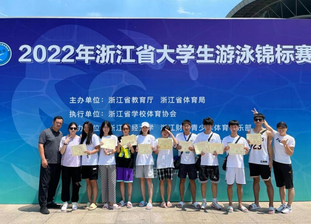 锦标赛是浙江省高校普通大学生游泳比赛的最高级别赛事,由浙江省教育厅、浙江省体育局主办。在本次比赛中,我校各组运动员展现了顽强的拼搏精神和坚强的意志品质。尤其是近年来不同项目公体甲组频频摘冠,体现了我校赛训团队不忘立德树人初心,牢记为党育人为国育才使命,聚焦“五育并举”育人目标,为我校高质量人才培养尽展“体”之担当的精神风貌。