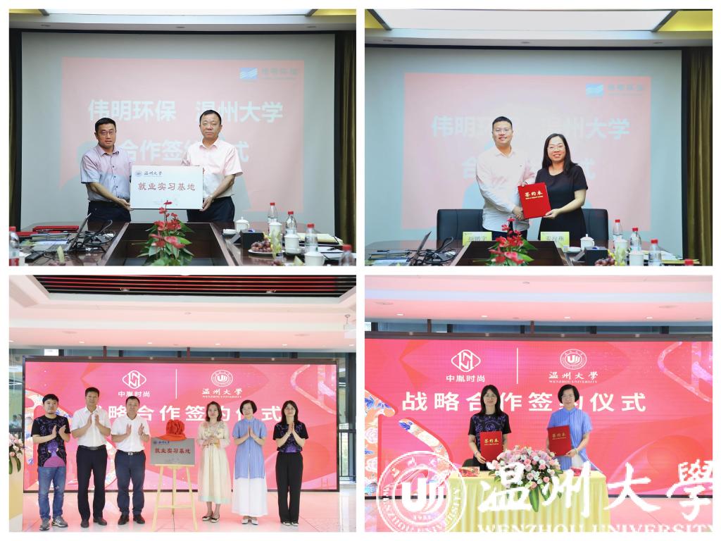 会上,生命与环境科学学院、美术与设计学院负责人分别代表学校与两家企业签订战略合作协议,并授牌成立就业实习基地。