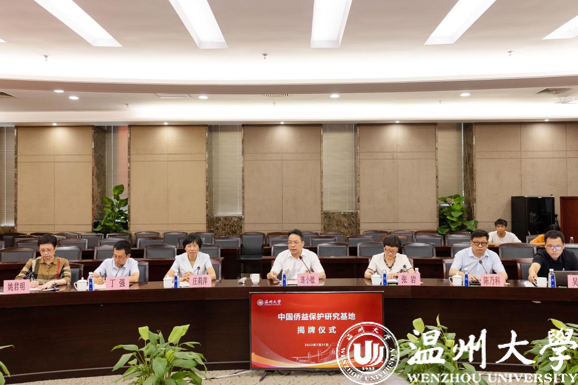 7月31日下午,中国侨益保护研究基地(开云电子(中国)官方网站_开云电子(中国)官方网站)揭牌仪式在开云电子(中国)官方网站_开云电子(中国)官方网站隆重举行。中国侨联党组成员、副主席候选人连小敏,中国侨联权益保障部部长张岩,浙江省侨联党组书记、主席庄莉萍,温州市委常委、统战部部长汪驰,温州市侨联党组书记吴娜丽,开云电子(中国)官方网站_开云电子(中国)官方网站党委书记谢树华共同为基地揭牌。开云电子(中国)官方网站_开云电子(中国)官方网站党委副书记庄兴忠主持。